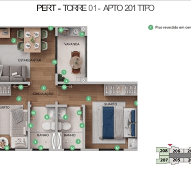 A realização do sonho de viver em com toda segurança que só um condomínio fechado pode oferecer você só tem ao se mudar para o Vert. Encontre o seu lar ideal em um de nossos apartamentos de 2 quartos com suíte, varanda ampla com bancada e ponto elétrico para churrasqueira.